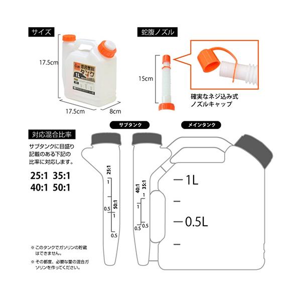 【PLOW 混合タンク 1L】25:1 50:1 35:1 40:1 混合燃料 混合ガソリン 混合計量タンク 混合容器 PLOW プラウ [品番:PH-KNT10]