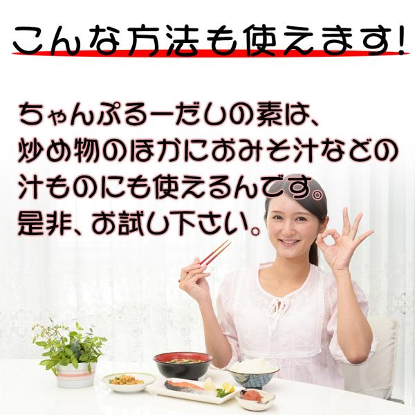 ちゃんぷるーのほかにも、みそ汁のだしの素としても使える商品となっています。