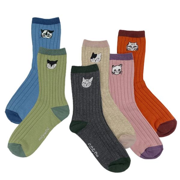 松尾ミユキ ソックス Rib リブ 靴下 レディース 猫グッズ 柄 雑貨 プレゼント おしゃれ ねこ かわいい 可愛い 大人かわいい ショートソックス 新商品