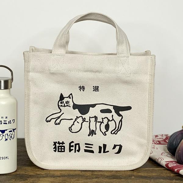 ミニトートバッグ レディース 猫柄バッグ 猫グッズ 猫印ミルク おでかけトートバッグ 小さめ ねこ かわいい 雑貨 プレゼント 女性 おしゃれ 可愛い 帆布 星羊社