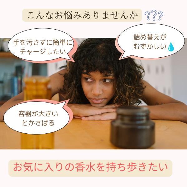 香水ノズルに押し当てて補充するタイプで簡単に詰め替えることができます。
