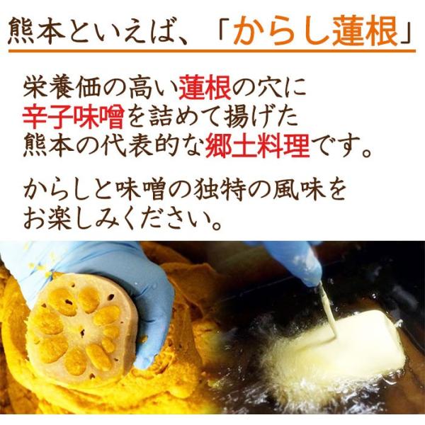 栄養価の高い蓮根の穴に、辛子味噌を詰めて揚げた、熊本の代表的な郷土料理です。