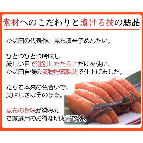からしめんたいこ 辛子明太子 博多 昆布漬け ご家庭用 無着色 お徳用 かば田の明太子