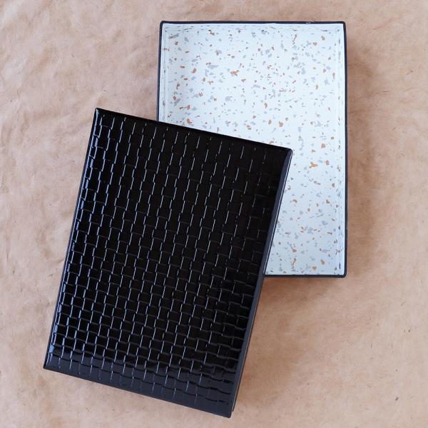 こちらの文庫箱は、和紙に代用漆(プラスチック樹脂)を塗り、手軽に使っていただけるように作りました。