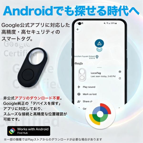 商品名:GPSタグ android スマートタグ 紛失防止 Find My Device 位置情報 音で探す 共有機能 ペット 鍵 バッグ 子供 迷子対策