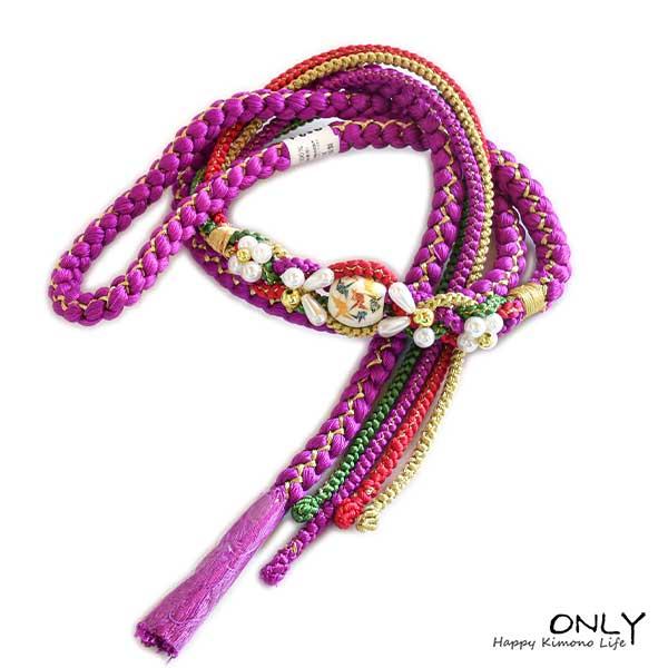 振袖用 正絹 帯締め パール飾り付 新作 新品 未使用 お正月 成人式 卒業式 梅紫色 ONLY f-656