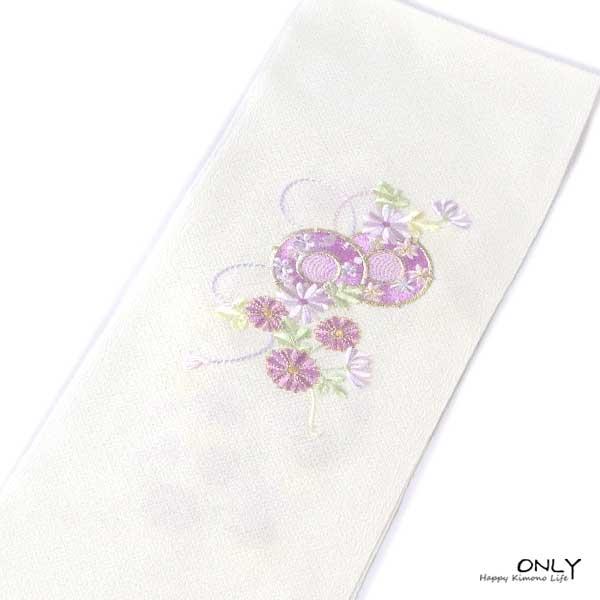 半衿 刺繍半襟 カラー刺繍 白 花柄 ポリエステル 日本製 洗える 送料無料 ONLY pp-01-15