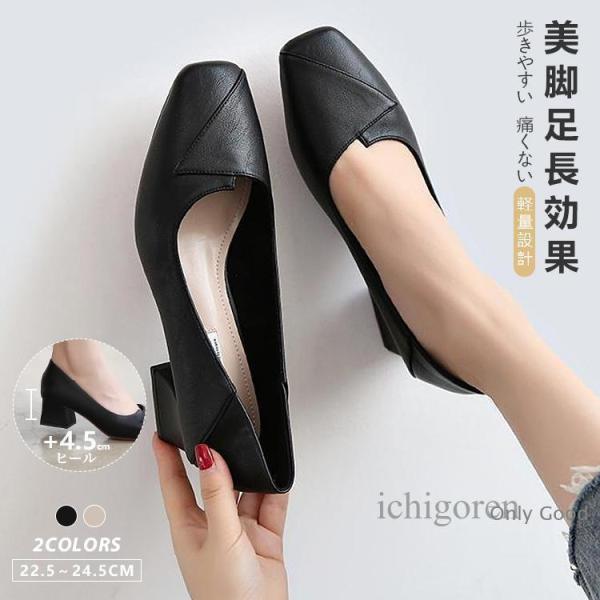 走れるパンプス 歩きやすい 痛くない 4.5cmヒール フォーマル ローヒール スクエアトゥ スクエア 疲労 足が痛くならないパンプス 楽 歩くのが楽な 痛くならない