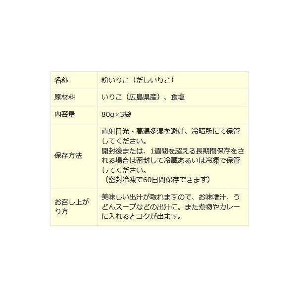 ポイント利用 セール いりこ(煮干し)の粉だし 80g×3袋(広島県産)粉末 煮干粉 広島 いりこ 無添加 送料無料