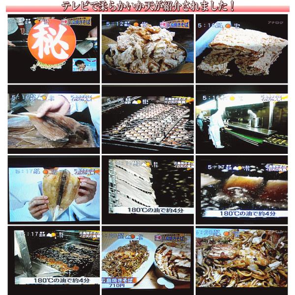 やわらかいか天はお好み焼きや焼そばの中にいれても香ばしく、また癖になる飽きのこない風味がきっと長く愛されている所以でしょう。