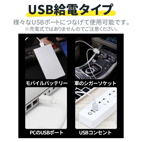 ※充電式ではありませんので、お手持ちのUSBポートに繋げてご使用下さい。