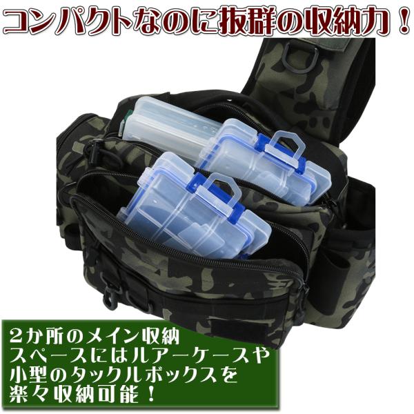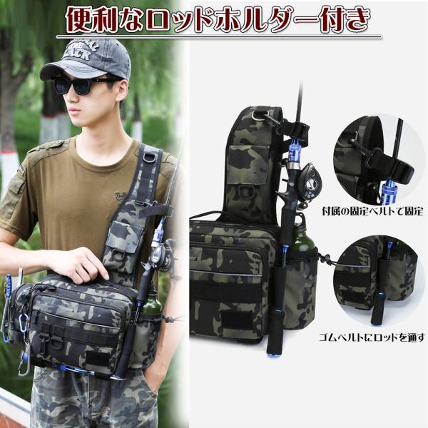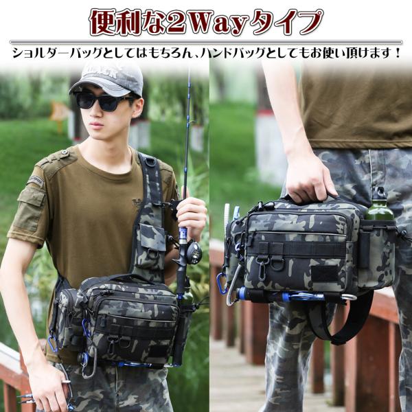 フィッシングバッグ 大容量 ショルダーバッグ 鞄 カバン ワンショルダー ロッドホルダー 迷彩 カモフラージュ ルアー 収納多数