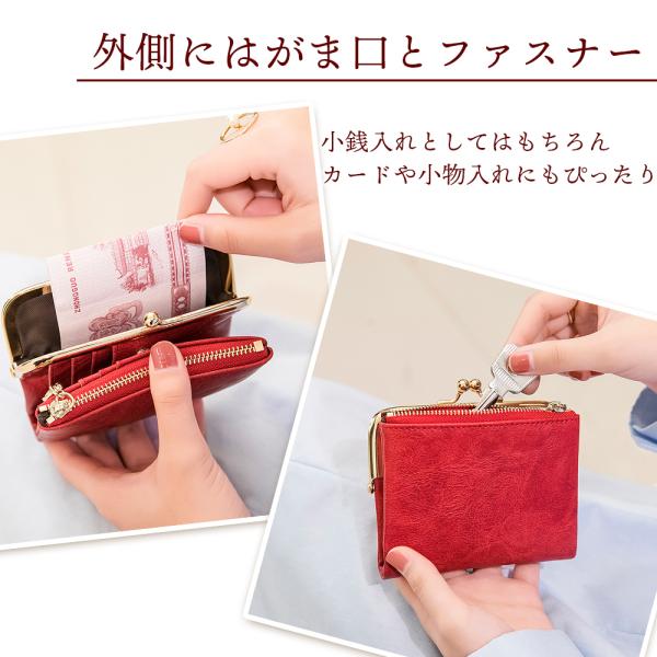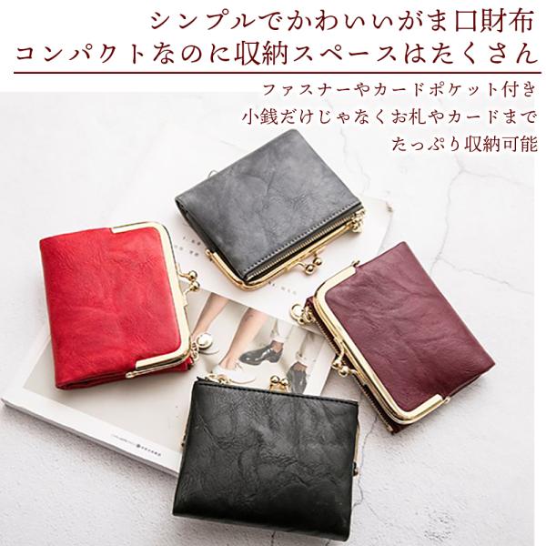 二つ折り財布 レディース がま口財布 シンプル おしゃれ 軽量 収納 小銭入れ レザー コンパクト