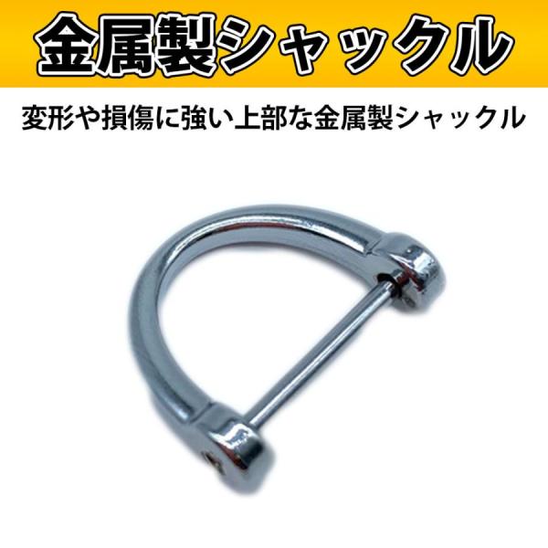 キーを取り付ける部分は丈夫な金属製シャックルなので、衝撃や破損にも強くなっております。