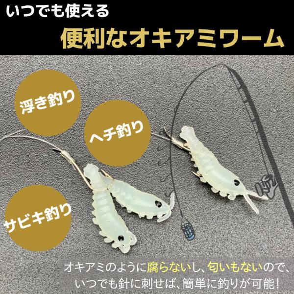 オキアミワーム エビワーム 100個セット 夜釣り 夜光 ワーム 疑似餌 フカセ釣り ウキ釣り アジング メバリング