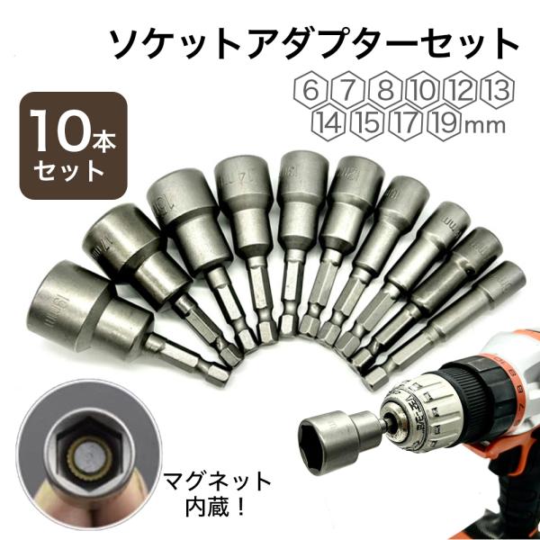 ソケットアダプターセット 10本 6角軸 インパクト 電動ドライバ- ソケットビット 磁石内蔵