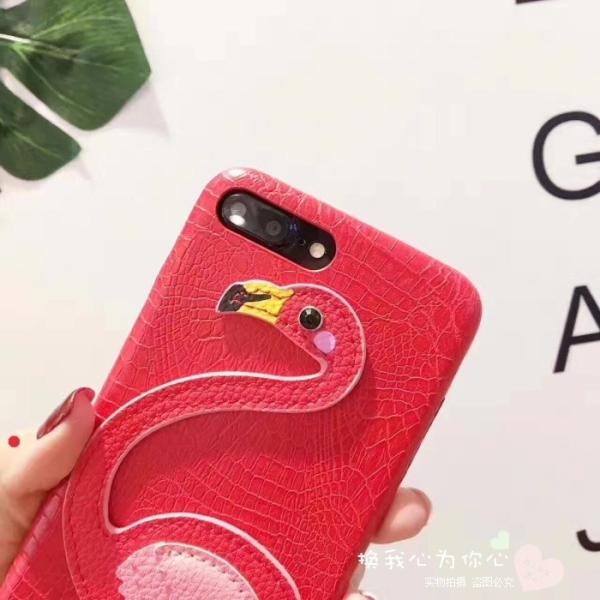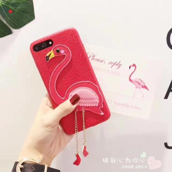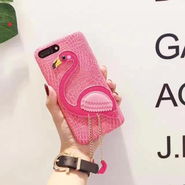iPhone6/6s/7 フラミンゴ チェーン付き レザーケース case かわいい ピンク アニマル 立体