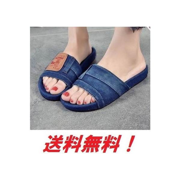 デニムサンダル レディース フラットサンダル ぺたんこ 夏 リメイク風