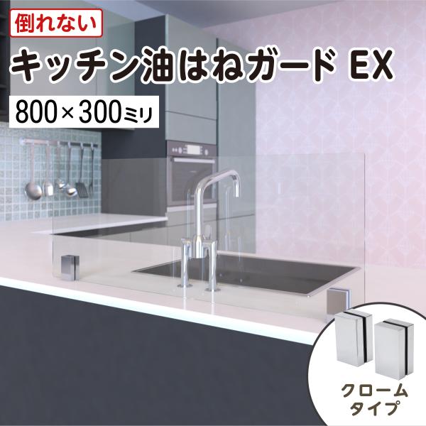 キッチン油はねガードEX(強化ガラスセット)クローム W800×H300×T5mm 規格サイズ 水はねガード キッチンガード レンジガード 飛沫感染防止 DIY 国内加工 \…