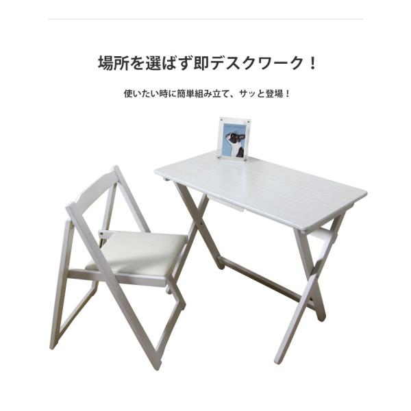 折りたたみデスク&チェアセット 80cm幅 デスク パソコンデスク イス付き おしゃれ 机 椅子 木製 テレワーク 作業台 pcデスク
