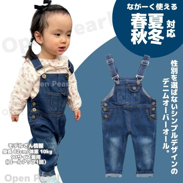 キッズ オーバーオール 子供服 デニム サロペット 男の子 女の子 80 90 100 110 120 130 140 つなぎ