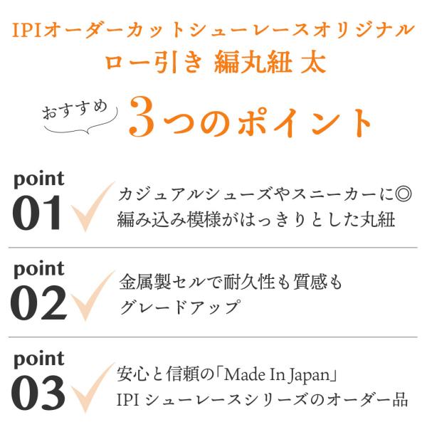 靴紐 IPI オーダーカットシューレース オリジナル ロー引き 編丸紐 太 55-210cm