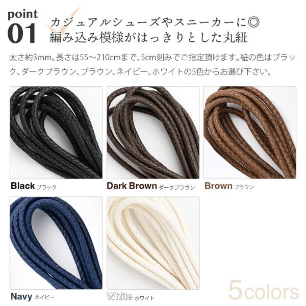 紐色:ブラック、ダークブラウン、ブラウン、ネイビー、ホワイト