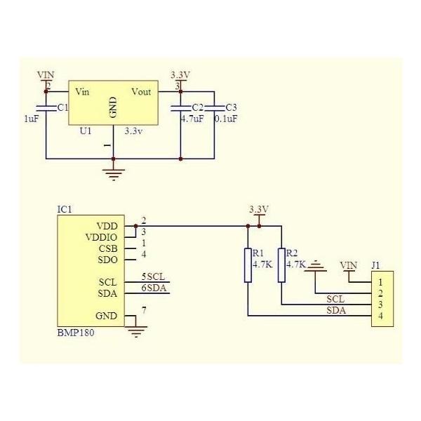 Bosch社の気圧気温センサーモジュールです。BMP180で検索するとライブラリや使い方の例が見つかります。データシートhttps://ae-bst.resource.bosch.com/media/_tech/media/datasheets/BST-BMP180-DS000-12.pdf