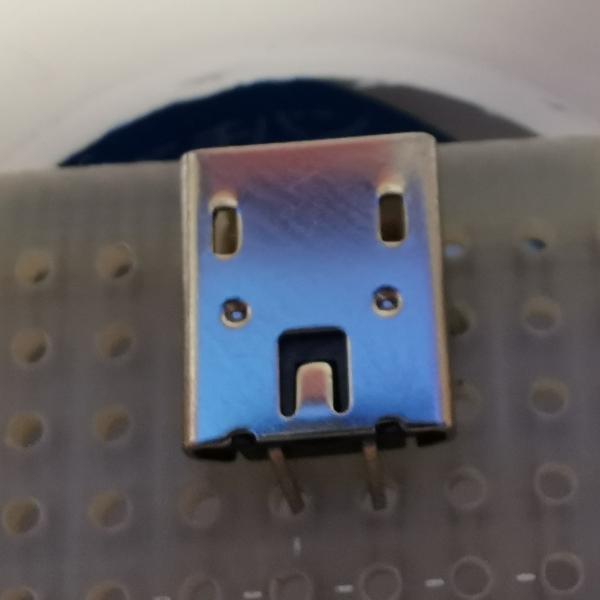 基板用マイクロUSBコネクター(電源専用)、ピンを少し曲げることによってユニバーサル基板にも使用できます。