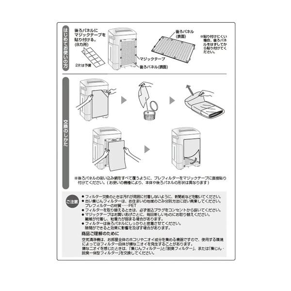 プロピレンを重合させた熱可塑性樹脂であるポリプロピレン材質を使用し、空気中に漂うホコリ、ペットの毛などをキャッチします。