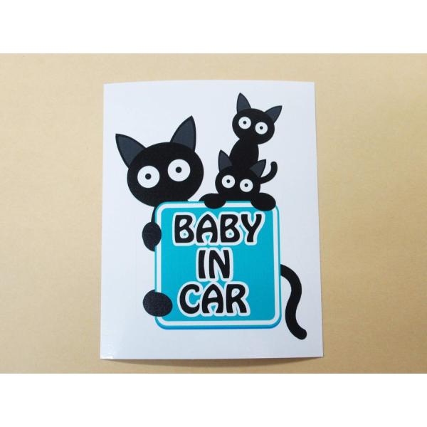 Baby in car/車/シール/防水/再剥離/貼ってはがせる/猫/赤ちゃん乗ってます/乗車中/ブルー/青色/窓/外貼り/ステッカー/baby on board