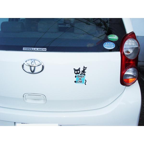 Baby in car ベビーインカー マグネットシート ステッカー 猫 ブルータイプ 赤ちゃん乗車中 猫の親子 車ボディー外貼り用84