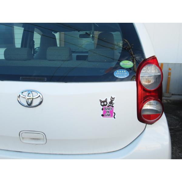 Baby in car ベビーインカー マグネットシート ステッカー 猫 ピンクタイプ 赤ちゃん乗車中 猫の親子 車ボディー外貼り用83