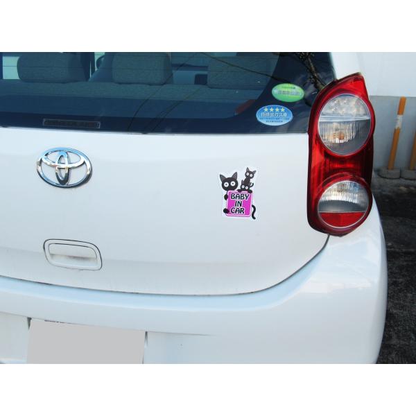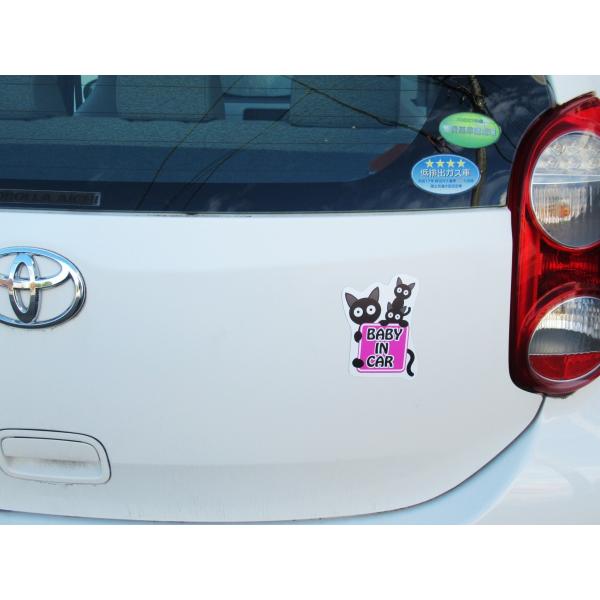 Baby in car/車/マグネットシート/猫/赤ちゃん乗ってます/乗車中/ピンク/外貼り/ステッカー/baby on board