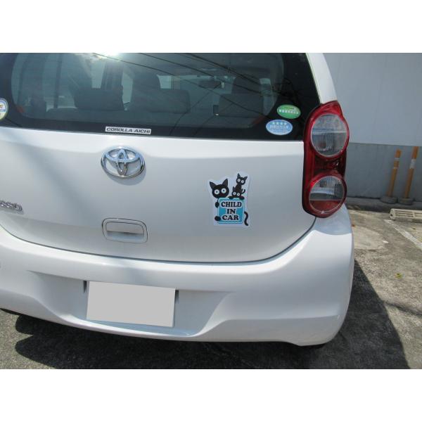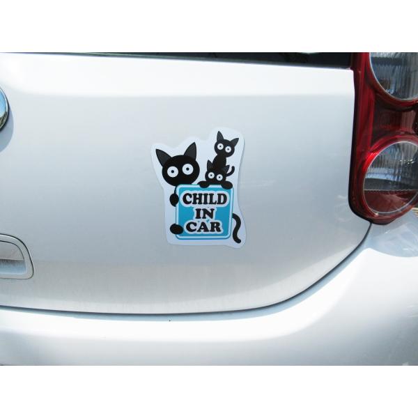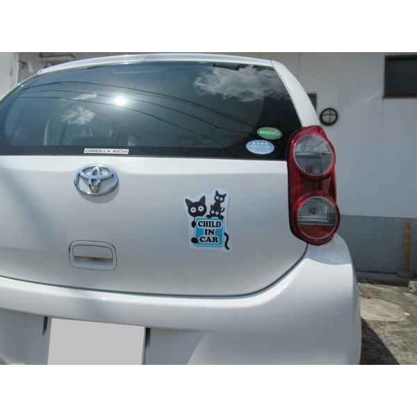 child in car チャイルドインカー マグネットシート 大サイズ ステッカー 猫 ブルータイプ 子供乗車中 猫の親子 車ボディー外貼り用96