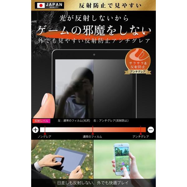 「パズドラで高得点ゲット。」思い通りに 指をすいすい動かせるアンチグレアフィルムを貼って高得点をゲット。【 ギラギラ感を抑える 低反射 】人影、蛍光灯や太陽光の反射など「ギラギラ感」をなくす低反射。