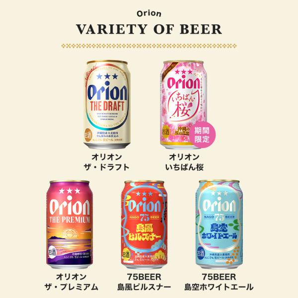 看板商品の「オリオン ザ・ドラフト」に加え、リニューアルした「75BEER」が2種類、人気商品の「オリオンザ・プレミアム」、季節限定の「オリオン いちばん桜」がセットになったギフトセットです。