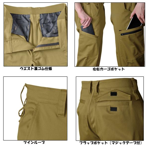 ☆程よい厚みのあるTCストレッチ素材使用で身体の動きを快適にサポートするカーゴパンツです。