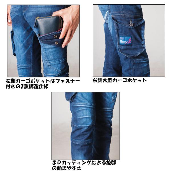 アイズフロンティア 7262 ストレッチ3Dデニムカーゴパンツ 73〜101cm 伸長率ヨコ48% I'Z FRONTIER