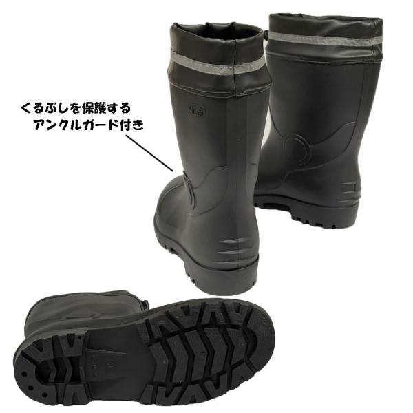 つや消し PVC 安全長靴ショート 抗菌・防臭・防滑仕様 25cm〜28cm 反射テープ フード付き