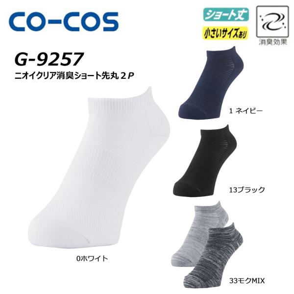 CO-COS ニオイクリア ショート先丸 2P S L 靴下 ソックス 消臭 先丸 ショート ワーク 仕事 現場 スポーツ 小さいサイズ ユニセックス 男女兼用 コーコス