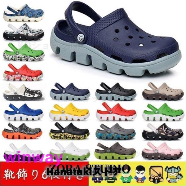 20タイプ可選☆二足で サボサンダル エスニックサンダル クロックス風 男女兼用サンダル サボサンダル 2WAY 軽量 EVA素材 靴飾り6枚付き! 夏