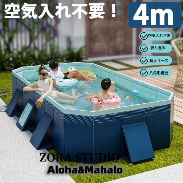 プール4M 折りたたみ プール 空気入れ不要 家庭用 プール 大型 ビニールプール 水遊び プール フレームプール 子ども プール 折り畳み 組立簡単