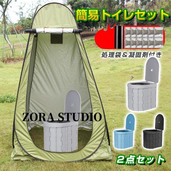 簡易トイレ テント セット ポータブルトイレ プライバシーテント 処理袋付き 折りたたみ 簡易 災害用トイレ 防災 非常用 キャンプ アウトドア