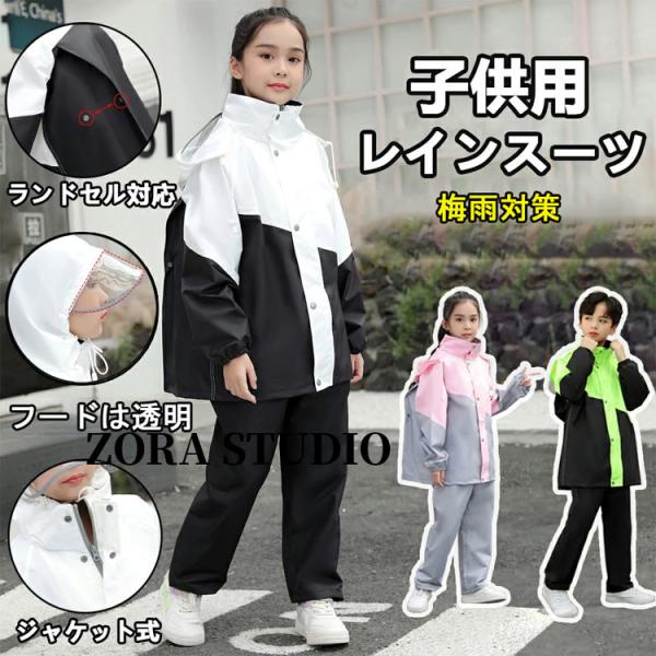 【8%OFFクーポン】レインコート キッズ 上下 レインウェア セパレート 上下 子ども レインコート セパレート女の子 男の子 入学準備 通園通学 防水防風 収納バッ