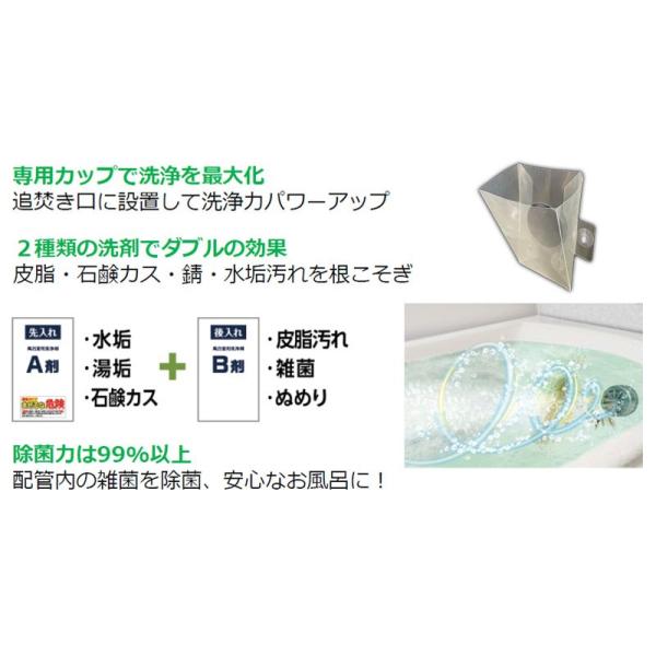 2種類の洗剤でダブルの効果? 皮脂、石鹸カス、水垢、あらゆる汚れ?、内部の雑菌までも根こそぎ除去?