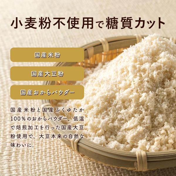 【原材料】大豆粉(大豆(国産))、エリスリトール、おからパウダー、米粉、砂糖/ベーキングパウダー【内容量】480g【保存方法】直射日光、高温多湿を避けて保存してください。【賞味期限】別途商品ラベルに記載【製造者】株式会社 オーガランド 〒899-4341 鹿児島県霧島市国分野口東1294番1【栄養成分表示】100g当たり(推定値):熱量401 kcal / たんぱく質20.7 g / 脂質 9.8g / 炭水化物62.8g(糖質52.3g、食物繊維10.5g) / 食塩相当量 1.1g/(エリスリトールを除いた糖質33.3g)【その他】※開封後は賞味期限にかかわらずお早めにお召し上がりください。※本品はグルテン含有穀物不使用を目的としており、小麦アレルギーの方に対応するものではありません。