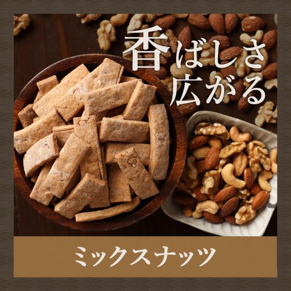 ミックスナッツ…おから(国内製造)、小麦粉(国内製造)、砂糖(ビート糖)、菜種油、豆乳、全粒粉、アーモンド、クルミ、カシューナッツ