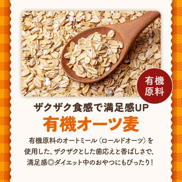 ■原材料 有機オーツ麦(アメリカ産)、エリスリトール、アーモンドプードル(アーモンド、コーンスターチ、大豆タンパク)、オートミールパウダー/ベーキングパウダー、甘味料(スクラロース)、(一部にアーモンド・大豆を含む)