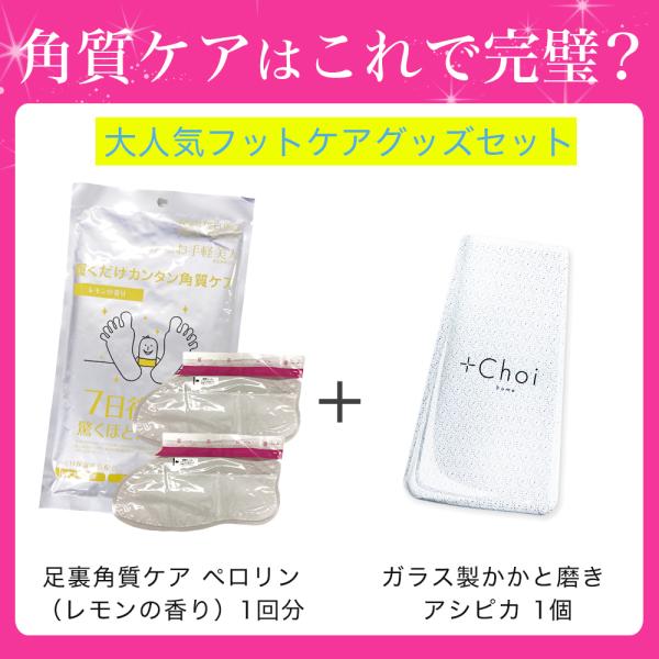 ■セット内容 フットピーリングパックペロリン(オリジナルレモンの香り)1個、ガラスのかかと磨きアシピカ 1個
